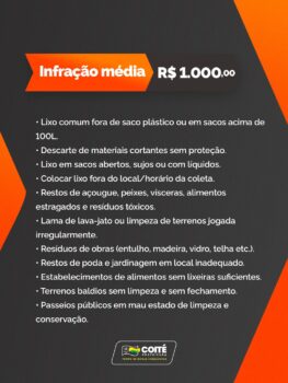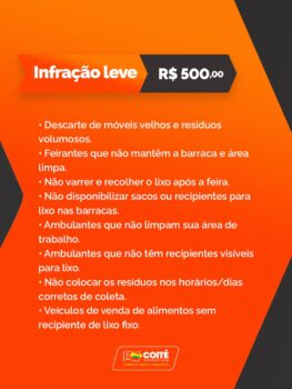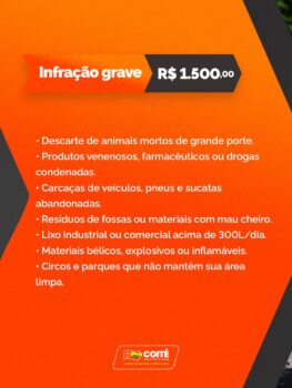 - Orientações sobre descarte correto e detalhes sobre multas aplicadas a quem descumprir as regras.